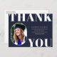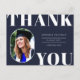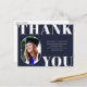Rounded Front Foto Rahmen, Senior Class Abschluss danke Ihnen Postcard. Solid marineblau Farbe Hintergrund, weißer Fetttyp "DANK YOU" und Text-Template Zeilen für den Namen des Absolventen, Klasse des Jahres und Schule.