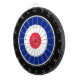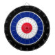 Ein roundel-grafisches Design im Mod-Stil auf einem soliden schwarzen Dekor auf einem feinen, individuellen Geschenk für sich selbst oder für jemanden, der auf Ihrer Liste.