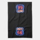 Dieses 16" x 24" schwarze Küchentuch mit dem Bild eines Route 66 roten, weißen und blauen Neonzeichens ist eine passende Touch für ein 20er, 40er und 60er Jahrzehnt Party!