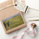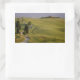 Photo souvenir rectangulaire autocollant de la route de gravier blanc (ou strada bianca) à Terrapille agriturismo avec cyprès à côté dans la lumière du soir dans la Valdorcia (Vallée d'Orcia) près de Pienza en Toscane, Italie. La route s'appelle aussi Gladiator Road parce que le film The Gladiator a été en partie enregistré ici.