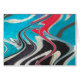 un blabk et un blanc avec le rouge et des accents d'aqua dans une conception abstraite onduleuse.