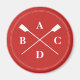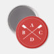 Ein smarter rot-weißer Magnet für einen kräftigen Ruder, der Platz für vier Initalien (oder ein kurzes Wort) hat. Das Design zeigt gekreuzte Ruder mit einem doppelten "gesteppten" weißen Kreis um sie herum, auf einem roten Hintergrund.