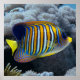 Die Royal Angel Fish ist einer der kleineren Fische, die auf Korallenriffen mit einer maximalen Größe von ca. 10 cm leben. Es ist auch einer der schönsten, mit seinem hellgelben Schwanz, die senkrechten, mit schwarzen Kanten umrissenen Streifen in Weiß, das Set an einem gelben Körper. Seine Flossen sind hübsch in Blau gehalten und ergänzen das Gelbe in Körper und Schwanz.