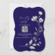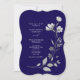 Faites une déclaration audacieuse et élégante avec ce faire-part de mariage à fleurs bleu royal. Doté de fines fleurs d'aquarelle argentée et d'une calligraphie gracieuse, cette carte aux formes uniques est parfaite pour une fête hivernale ou formelle. Son charme botanique romantique donne le ton d'un événement sophistiqué plein d'amour et de style.