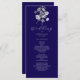 Feiern Sie Ihre Zeremonie stilvoll mit diesem eleganten Hochzeitsprogramm mit einem tiefen königsblauen Hintergrund und anmutigen silbernen Blumenbildern. Das Layout bietet ein sauberes, leicht lesbares Format für Ihre Gäste und macht es zu einer raffinierten Wahl für Winter- und feierliche Hochzeiten.
