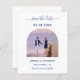 Eine moderne Hochzeit Save the Date Foto Karte. Weißer Hintergrund, royal blauer Text. Personalisieren Sie Ihre Foto- und Hochzeitsdetails und fügen Sie diese hinzu.