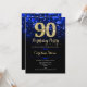 90. Geburtstagsfeier Einladung. Elegantes königsblaues Design mit Imitaten Glitzer Gold. Mit stilvollen Diamanten, Bokeh-Leuchten und Skript-Schriftart. Männer oder Frauen laden ein. Ideal für eine stilvolle Geburtstagsparty. Personalisieren Sie Ihre persönlichen Daten. Nachricht, wenn Sie weitere Anpassungen benötigen. Gedruckte Zazzle Einladungen oder Sofortdownload digitalen druckbaren Vorlage.
