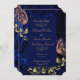 Dieses elegante Hochzeitsticket Ankündigung Datum freihalten mit wunderschönen königsblauen, glänzendem verziertem Gold und zarten rosa Schmetterlingen ist eine elegante Ergänzung zu Ihrem Event.