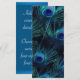 Königlich blaue Pfauenhochzeiten. Lila Pfauenhochzeiten. Aquamarine Pfauenhochzeiten. Passen Sie Ihre Zeremonie Details, Schriftart Stil und Schriftart Farbe an. Auf der Rückseite können Sie den blauen Hintergrund löschen und Ihre eigene Farbe aus den verfügbaren Optionen auswählen.