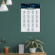 Pfauenhochzeittisch mit hübschen silbernen Akzenten auf herrlichem königsblauen Pfauenhintergrund. Dieses wunderschöne königsblaue Pfauenhochzeitdiagramm lässt sich leicht mit Ihren Veranstaltungsdetails, dem Wortlaut und dem Schriftart-Stil anpassen. Dies ist ein gedrucktes Design ohne echte Juwelen, Federn, etc.