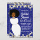 Diese elegante königsblaue Brautdusche mit Perlenrahmen auf einem schönen königsblauen Hintergrund mit einer afroamerikanischen Frau in weißem Kleid. Diese Einladung vermittelt einen ersten Eindruck von Stil und Eleganz für Ihre große Veranstaltung.