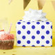 Ein Umhüllungspapier mit einem königlich blauen Polka-Punktmuster mit mittlerer Entfernung zwischen den Punkten auf weißem Hintergrund. Passen Sie den weißen Hintergrund unter anderen Optionen an.