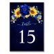 Royal Blue Rustic Sonnenblume Moderne Blumenhochze Tischnummer