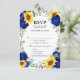 Royal Blue Rustic Sunflower Geometric Wedding RSVP Karte