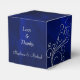 Das ist eine stilvolle, reich aussehende Gastgeschenk Hochzeit-Box, mit Ihrer speziellen individuellen Nachricht und Ihren Vornamen in Silber auf der Rückseite. Hübsche silberne Wirbel enden von jeder Seite der Box, und alles ist auf einem tiefen königsblauen Farbverlauf Hintergrund platziert. Diese Gefälligkeitsbox passt zu den Royal Blue Silver Swirl Monogram Wedding Einladungen in unserem Geschäft.