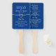Moderne, minimalistische, elegante, einfache kalligraphische königsblaue Hochzeitsfans mit goldenem Seilkern.