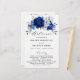 Élégant programme de mariage à thème bleu royal blanc argent avec l'élégant bouquet de bleu royal, marine, argent, blanc pur bourgeons de fleurs roses et sauge vert eucalyptus feuilles. Veuillez me contacter pour toute aide sur la personnalisation ou si vous avez besoin d'un autre produit avec ce design.