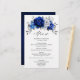 Elégant menu mariage à thème bleu royal blanc argent avec élégant bouquet de bleu royal, marine, argent, couleur blanche pure des bourgeons de fleurs roses et sauge vert eucalyptus feuilles. Veuillez me contacter pour toute aide sur la personnalisation ou si vous avez besoin d'un autre produit avec ce design.