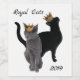 Eine schwarze Katze und eine graue Katze tragen beide goldene Kronen auf diesen königlichen Weinetiketten. Anpassen durch Hinzufügen eigener Wörter.