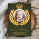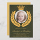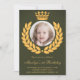 Élégante invitation de 1er anniversaire avec une belle couronne de laurier et une couronne. Ajoutez simplement les détails de votre événement sur ce modèle facile à utiliser et ornez cette carte avec la photo préférée de votre enfant pour en faire une invitation unique.