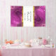Ein Geburtstagsbanner mit elegantem abstraktem Design. Dunkle, lila Amethystfarbe mit goldfarbenen Streifen, die zwischen Schichten eingebettet sind. Reich und schön gestaltet. Ein Rechteck mit einem Imitat mit einem goldenen Rahmen, der oben mit dem personalisierten Text überlagert ist.