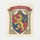 This personalized blanket features a heraldic crest. The central element is a golden Lion Rampant (standing on its hind legs) set on a quartered shield of red and deep blue. The shield is framed by intricate gold Celtic knotwork and topped with a small crown.