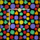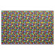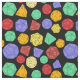 Handwerkliche Geschenke für Fans verschiedener Rollenspiele und Fantasiespiele mit diesem gemusterten Stoff. Es zeigt farbenfrohe Abbildungen verschiedener Würfel mit 12-seitigem, 20-seitigem und 4-seitigem Würfeln in grünem, rotem, orangefarbenem, lila und gelbem Set auf schwarzem Hintergrund.