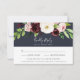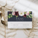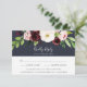 Die elegante RSVP-Karte in Aquarellfarben bietet eine Reihe von blühenden Rosa-, Bordeaux- und Elfenbeinblüten mit üppigem botanischem Blattwerk. Personalisieren Sie mit Ihrem Wunschtermin, akzeptieren und ablehnen Sie den Wortlaut und fügen Sie Ihre Speisen oder Auswahlmöglichkeiten unten hinzu. Entworfen, um unsere Blush Romance und Midnight Romance Hochzeit und besondere Event-Sammlung zu passen.
