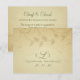Élégantes cartes d'invitation de mariage d'automne antique avec enveloppes, ornées de beaux rouleaux romantiques et de feuilles dans des couleurs ivoire vieilli et sauge. Illustration © Teri Francis. Timbres-poste et cartes de vœux assortis disponibles dans la galerie.
