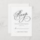 Cette carte de réponse présente les lettres "rsvp" dans un élégant script noir. Les champs de texte sont personnalisables et peuvent être modifiés, si vous le souhaitez.