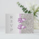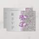 Elégantes cartes RSVP personnalisées en argent et lilas avec un beau motif de paillettes en argent imprimé, un joli arc imprimé lilas brillant et ruban et joli bijou en diamant imprimé. Ces cartes à plat chic, glamour et tendance sont décorées de part et d'autre. Belle, chic, tendance, invitations modernes. VEUILLEZ NOTER : Il s'agit de graphiques imprimés à plat - pas de vrais arcs, paillettes ou pièces surélevées. Le texte, la police et la couleur de la police peuvent tous être customisés. Si vous avez besoin d'aide pour customiser votre produit, veuillez me contacter par l'intermédiaire de mon magasin. Je serai heureux d'aider. J'ai des produits correspondants dans mon magasin.