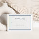 Diese einfache und schicke Hochzeitskarte, die sich mit unserer Hochzeitseinladung von Ocean Tides abstimmen lässt, weist eine doppelte Grenze von maritim blau mit elegantem Block und Schriftzeichen in klassisch grau und kontrastierend tiefblau auf. Die Karten werden in weiche, blassgraue und weiße Streifen umgewandelt.