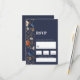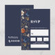 Dieser französisch-ländlich Bohemische inspirierte Hochzeitsroman RSVP hat wunderschön handgemalte Aquarelltöne. Es ist eine elegante und dennoch einfache Einladung, die in einem weißen Schriftart gedruckt wird. Die Karte hinten hat eine solide Farbe und Namen für Hochzeitspaare. Bearbeiten Sie die Vorlage einfach an Ihre Braut- und Bräutigam-Namen und Hochzeitsdetails. Französisch Land Boho bemalt Blumen Hochzeit RSVP. Navy Blue Farbe ist Hex #2B324B.