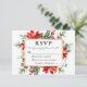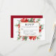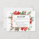 Die elegante Watercolor Poinsettia Blumengrün Wedding RSVP Card beinhaltet rote Poinsettias, Eukalyptus-Blätter, Kiefernzapfen, Kiefernnadeln, Baumwolle, Holly-Beeren und andere wunderschöne botanische Wintergärten. Goldrahmen. Rot zurück.