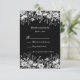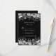Eine lustige Schwarz-Weiß Hochzeitseinladung auf schwarzem Hintergrund und hellgrauem Text. Entspricht dem Set der Einladungen.