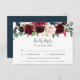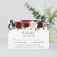 Diese RSVP-Karte wurde speziell für die Abstimmung mit unserer Hochzeitskollektion von Radiant Bloom entwickelt und bietet ein Spray aus Aquarellfarben in Bordeaux-Marsala, Rosa und Marineblau, das Ihren Wunschtermin ergänzt und die Formulierung "Akzeptieren und ablehnen" nach Ihren Wünschen ergänzt. Fügen Sie Ihre Speisen oder Auswahlen ganz unten hinzu.