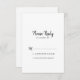 Ces cartes RSVP modernes sont parfaites pour un mariage rustique. Le design sobre et élégant présente une typographie de script classique et sophistiquée en noir et blanc.