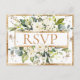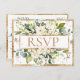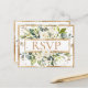 Elegante Blume mit Sahne und Elfenbein, umgeben von üppiger Vegetation und goldenen Spuren. Typografie vor "UAWG". Auf der Rückseite finden Sie Informationen und Namen von Braut und Bräutigam. Goldene Zierteile und Glanzstücke runden diese Schönheit mit Eleganz auf ihre beste Art ab. Nur schön. Budget Postkarte.