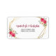 Dieses hübsche, elegante Design besticht durch reiche, romantische Blumenbouquets in Aquarellfarben mit Blume und Beeren in kräftigen Bordeaux-Rot-Weiß-Farbtönen sowie durch den Zauber eines Eukalyptus und immergrünen Kieferngrün und einen geometrischen Rahmen aus vergoldeter vergoldeter Folie. Der benutzerdefinierbare Name und die Rücksendeadresse werden in der Mitte in beliebter Schrift- und Serifentypografie angezeigt, im Rahmen können Sie dieses Label für Ihre eigene Hochzeit personalisieren, indem Sie den Text in der Vorlage ändern.