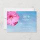 Une fleur d'hibiscus rose vif accentue cette carte de réponse sur un arrière - plan d'aquarelle bleu turquoise, le rendant parfait pour la plage, tropicale, destination, hawaïenne ou mariage d'été. Cela se coordonne parfaitement avec le Faire-part de mariage Tropical (aquarelle).