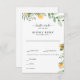 Sonnenblumen und Foliage auf der RSVP-Antwortkarte für die White Wedding. Abendessen Optionen.