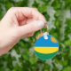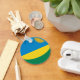 Die Fahne Ruandas wurde dem Kreisfob dieses Schlüsselanhängers geschickt angepasst. Eine praktische Erinnerung des ruandischen Erbes.