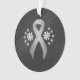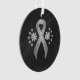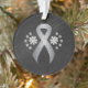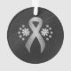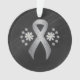 Ruban d'argent avec fleurs blanches dans un design de tableau noir. Le ruban argenté est associé à la sensibilisation à la violence envers les personnes âgées en mai, à la sensibilisation à la dyslexie en octobre, à la sensibilisation des enfants handicapés et à l'encéphalite.