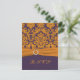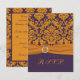 Cette carte-réponse damassée orange mandarine et violet aubergine comporte un ruban imprimé et une broche bijou qui correspond à l'invitation de mariage présentée ci-dessous. Le texte et le choix du papier sont personnalisables. Si vous avez besoin d'éléments supplémentaires assortis, veuillez envoyer un e-mail à niteowlstudio@gmail.com avec votre demande.