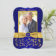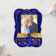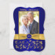 Cette élégante invitation photo pour un 50e anniversaire de mariage de couleur bleu royal et or avec des fleurs et des volutes comporte un ruban or IMPRIMÉ et un médaillon bleu et or avec un aspect de gravure FAUX IMPRIMÉ. Il y a une zone de modèle pour que vous puissiez télécharger votre propre photo numérique. Vous pouvez supprimer le texte stylisé en écriture cursive "Anniversaire de mariage" ou "50e". Tout le texte est personnalisable, ainsi que les choix de papier. ****VEUILLEZ NOTER que si vous choisissez du papier métallisé or, c'est un or très foncé et cuivré et cela modifiera les couleurs du design (transformera la photo en or, etc.), donc je NE suggère PAS d'utiliser ce papier. Le papier feutre modifiera également légèrement la couleur de votre photo. AUSSI, si vous changez de police ou de taille de police, votre texte risque de ne plus convenir correctement. Zazzle ne modifiera rien pour les fautes de frappe, l'alignement ou autre, et je ne verrai pas votre invitation. Tout sera imprimé tel qu'il apparaît sur votre écran. Si vous avez besoin d'aide pour l'invitation, veuillez me contacter AVANT de la commander. Cette invitation est conçue pour s'adapter à la carte de forme incurvée de taille 5x7. Si vous changez pour une autre taille/forme, le design