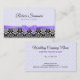 Élégant ruban violet avec damas vintages noirs et blancs, modèle de carte de visite.