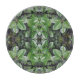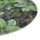 Verlieren Sie sich in den Tiefen des grünen Wunderlands auf diesem runden Schneidebrett, ein Muster aus einem Original Foto von HomeWare eines Gummibaumes. Das Foto wurde wiederholt, um mehrere Blätter zu bilden, was eine geheimnisvolle Tiefe in diesem üppigen, tropischen Design schafft. Die Blätter sind glänzend und glatt, in natürlichen Grüntönen, von einem helleren, gelben Grün im Sonnenlicht bis zu einem tieferen Grün im Schatten. Ihre hellgelben grünen Stiele fügen dem Foto ein lineares Muster hinzu.