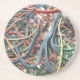 Foto von farbenfrohen Gummibändern, gedruckt an Kanten von Untersetzer.