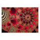 Ein glitzerndes Fraktal Design mit verzierten dunklen und lebhaften Rot-Spiralen, überlagert mit goldenen Filigreen wie Metallfässern und mit glitzernden Rubinen bestickt.
