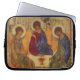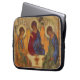 Antikes Andrei Rublev-Kunstwerk/Ikone mit dem Vater, dem Sohn und dem Heiligen Geist, die an einem Tisch sitzen. Die Bilder scheinen Engelsflügel zu haben.